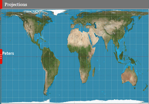 En la projecció de Mercator, la més utilitzada en el països del hemisferi nord, un territori com mes s'allunya de l'Ecuador més gran sembla. Així Groenlandia sembla del tamany d'Africa quan en realitat es 14 vegades més petita. Hi ha projeccions, però, que mantenen la proporció correcta entre les superfícies dels diferents països: